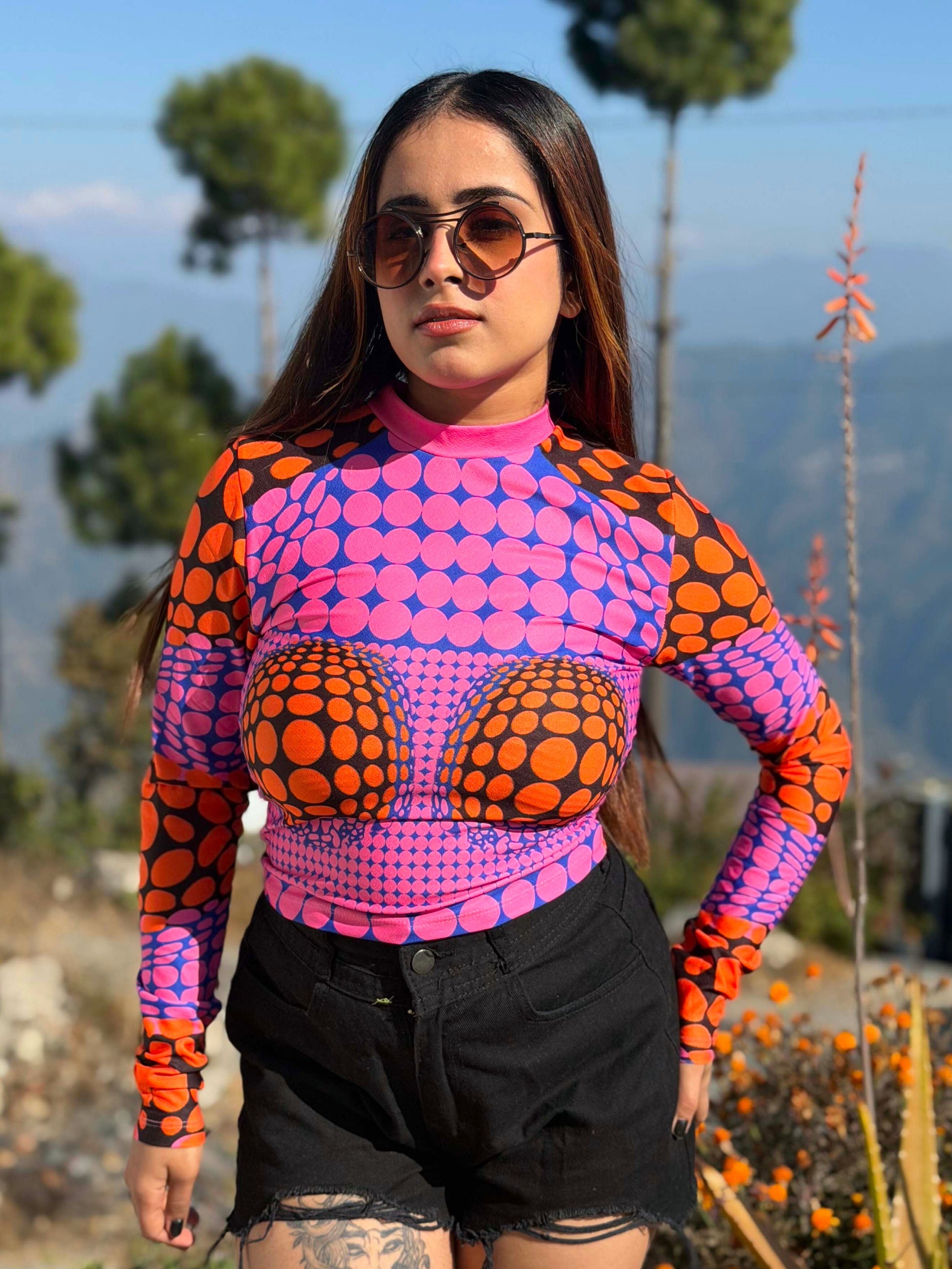Elevate your wardrobe with this vibrant, eye-catching top . Crafted from high-quality lycra facric, this colorful piece is designed to make a statement while ensuring comfort and durability. Perfect for any occasion, whether you're dressing up for a night out or adding flair to your everyday look, this top is versatile and stylish. Don't miss the chance to enhance your collection with this must-have addition that promises to turn heads and spark conversations.