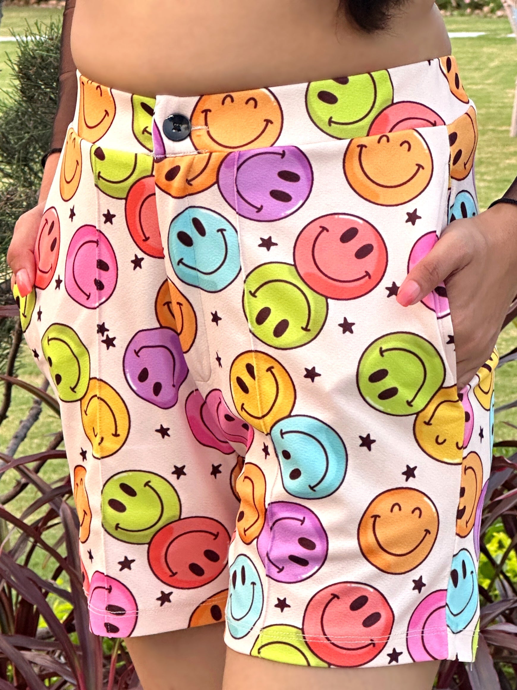 Elevate your casual wardrobe with our vibrant Smiley Face Shorts, designed to bring a touch of joy to your everyday style. Crafted from soft, breathable fabric, these shorts offer ultimate comfort and flexibility, making them perfect for lounging or outdoor adventures. The playful smiley face print adds a fun and cheerful vibe, ensuring you stand out wherever you go. With an elastic waistband for a secure fit, these shorts are not just stylish but also practical. Embrace positivity and make a statement with every step you take in these delightful shorts.