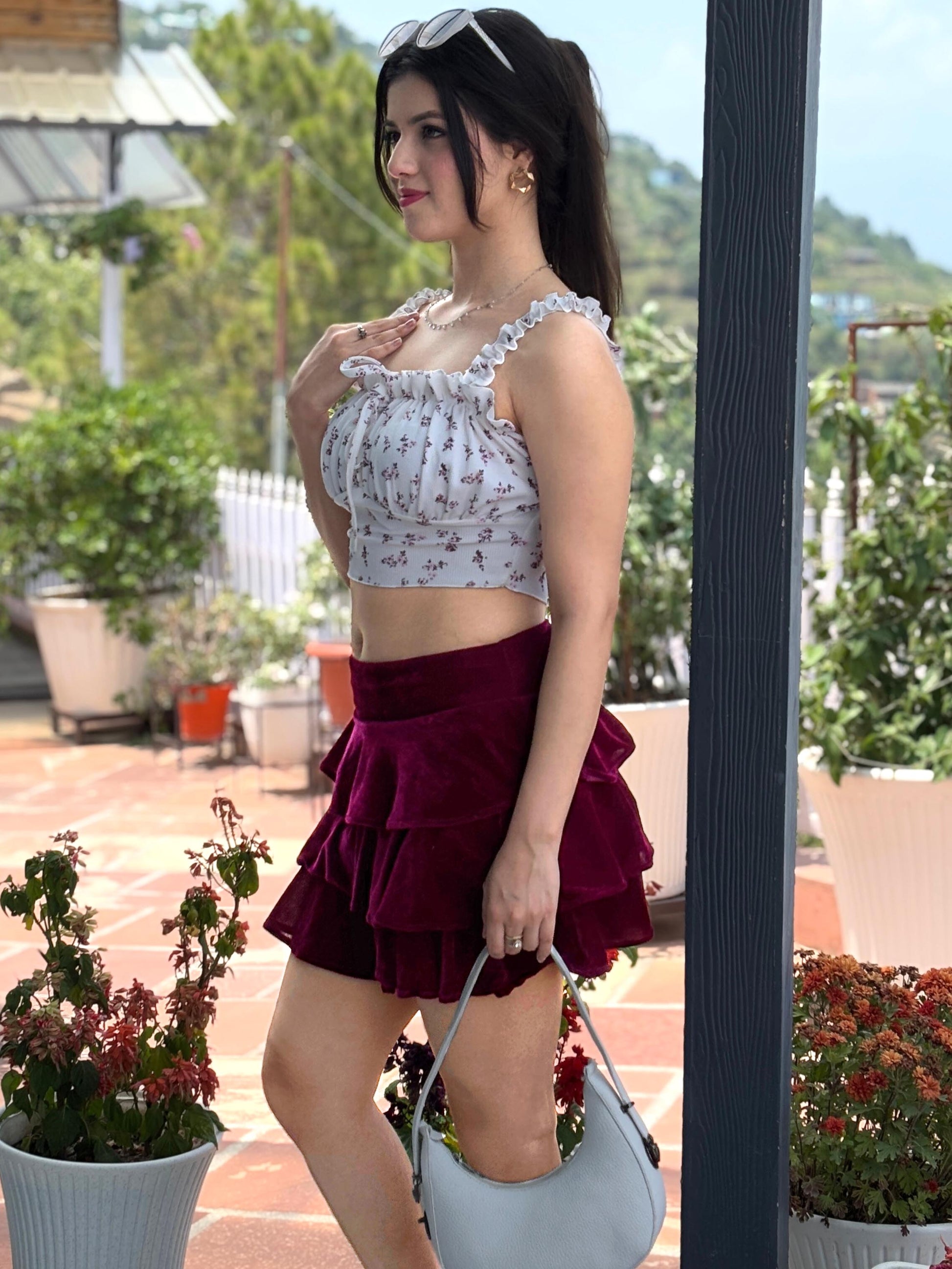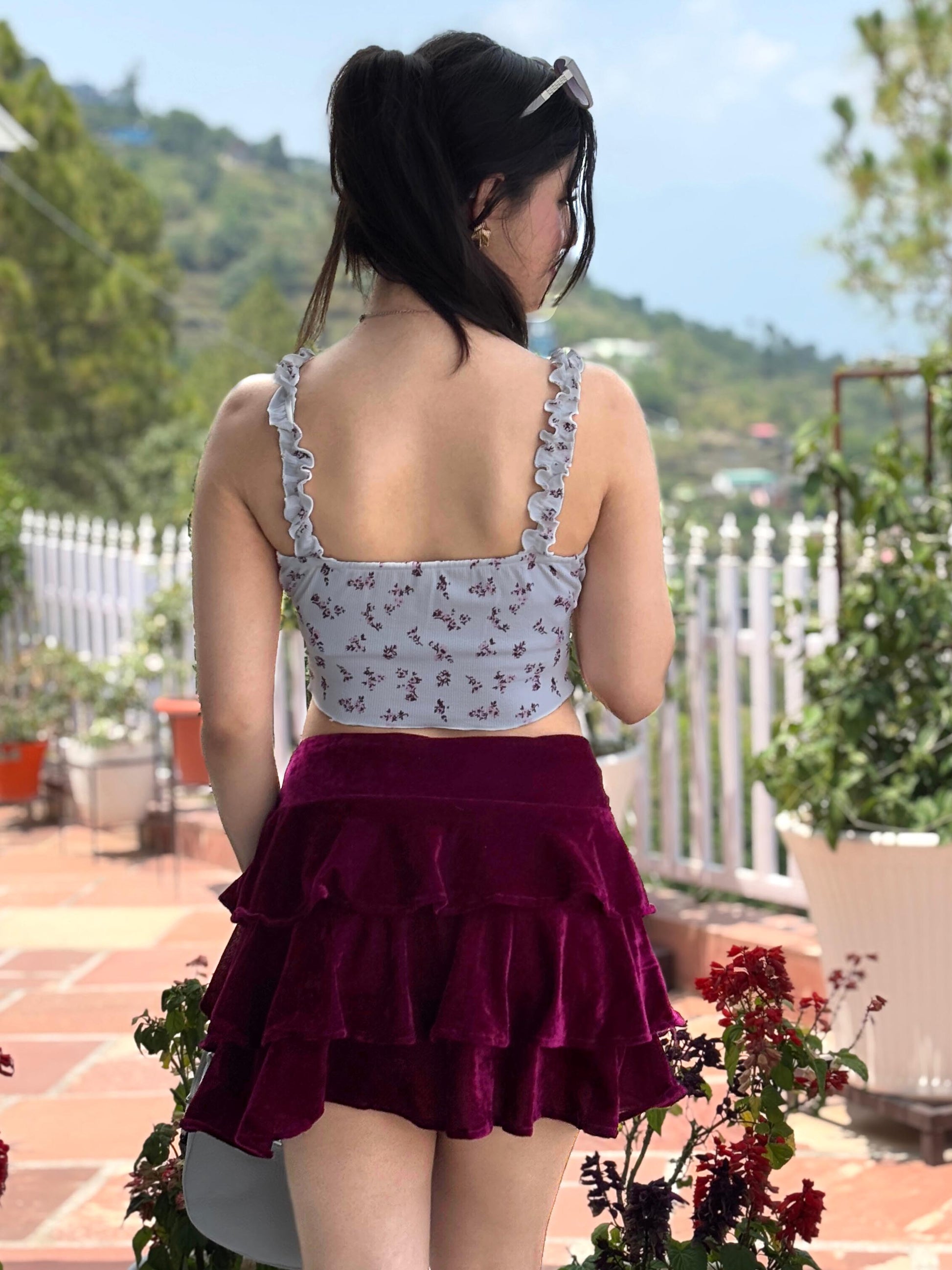 Elevate your wardrobe with our exquisite wine color velvet skirt, designed to add a touch of luxury to any outfit. The soft, plush fabric drapes beautifully, while the ruffled hem adds a playful yet sophisticated flair. Perfect for both casual outings and formal events, this versatile piece can be paired effortlessly with a variety of tops and accessories. Experience comfort and style in one stunning garment that is sure to turn heads wherever you go.