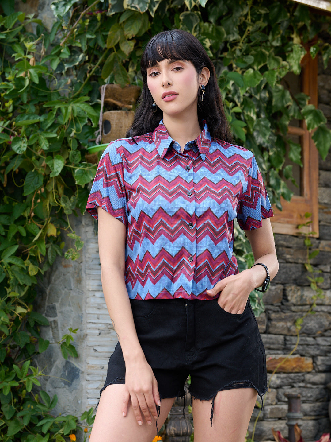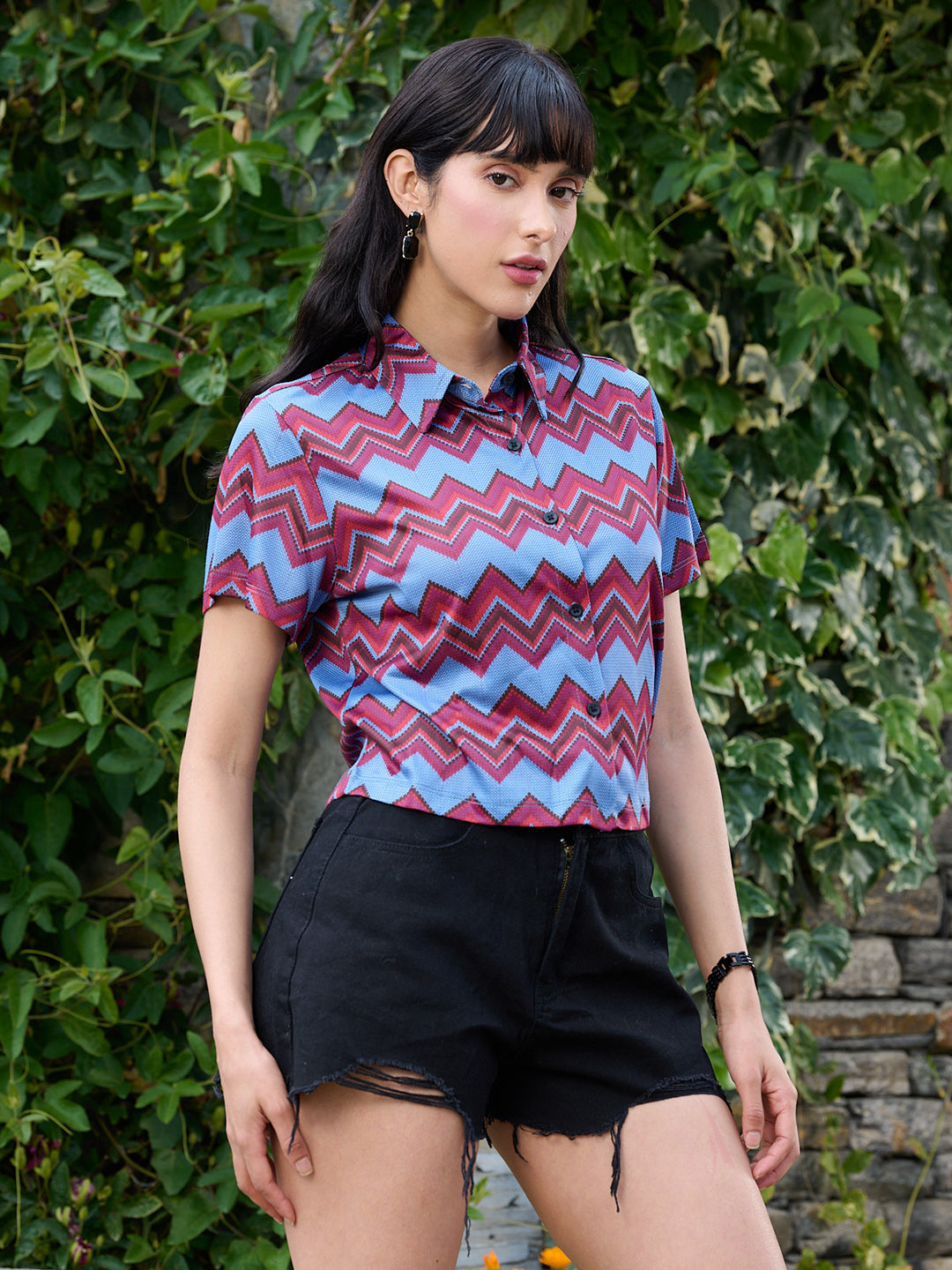 This striking chevron printed shir is the perfect addition to any wardrobe. Crafted from high-quality fabric, it offers both comfort and style, making it ideal for casual outings or dressier occasions. The bold chevron pattern adds a contemporary flair, ensuring you stand out in any crowd. Elevate your fashion game with this eye-catching piece that combines modern design with timeless appeal.